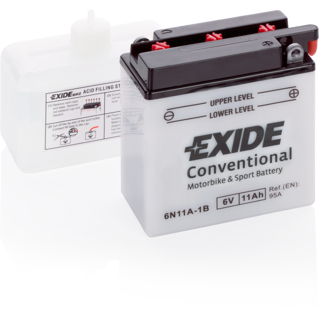 La batería Exide 6N11A-1B es una batería de plomo-ácido convencional diseñada específicamente para motocicletas, que destaca por su excelente rendimiento y durabilidad. Fabricada por EXIDE, marca líder en baterías de alta calidad.