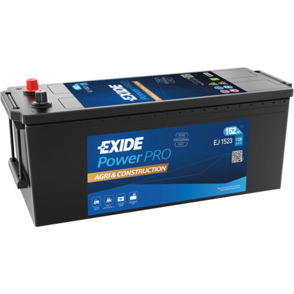 La batería Exide EJ1523 proporciona un arranque potente y fiable incluso en las condiciones más exigentes. Ideal para tractores, cosechadoras, excavadoras y otros vehículos pesados de trabajo.