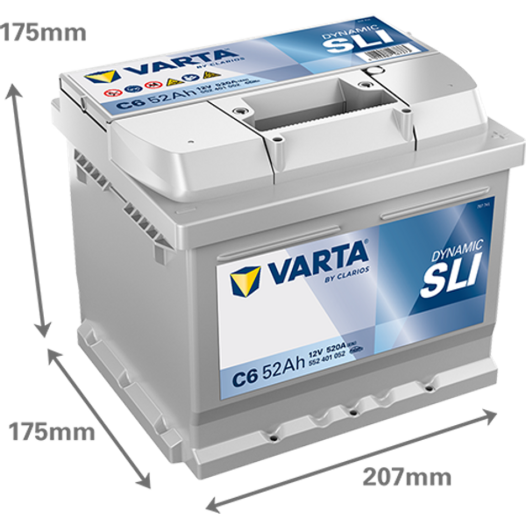Batería Varta C6 Silver Dynamic. 12V - 52Ah/520A (EN) 552 401 052 316 2 Caja LB1