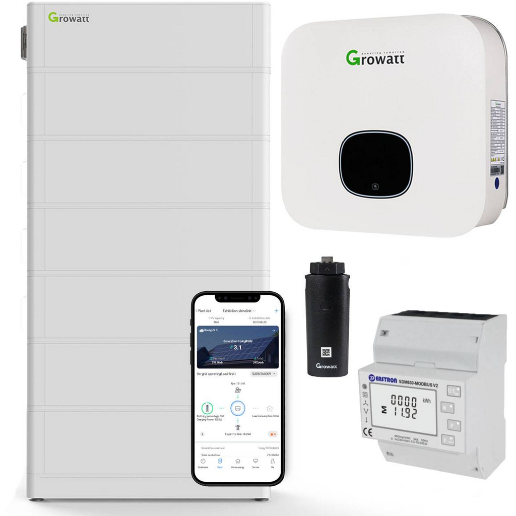Kit inversor híbrido Growatt MIN 4600-XH 4.6 kW con batería de 15.3 kWh