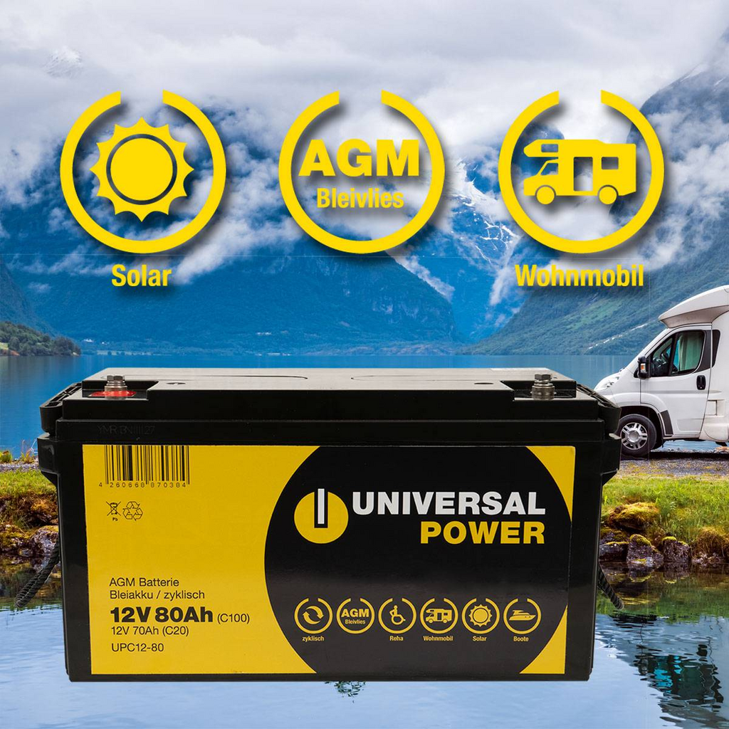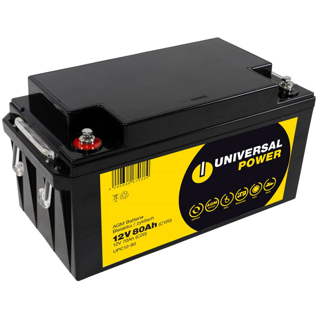 - 1x Batería solar Universal Power ácido 12V 80Ah